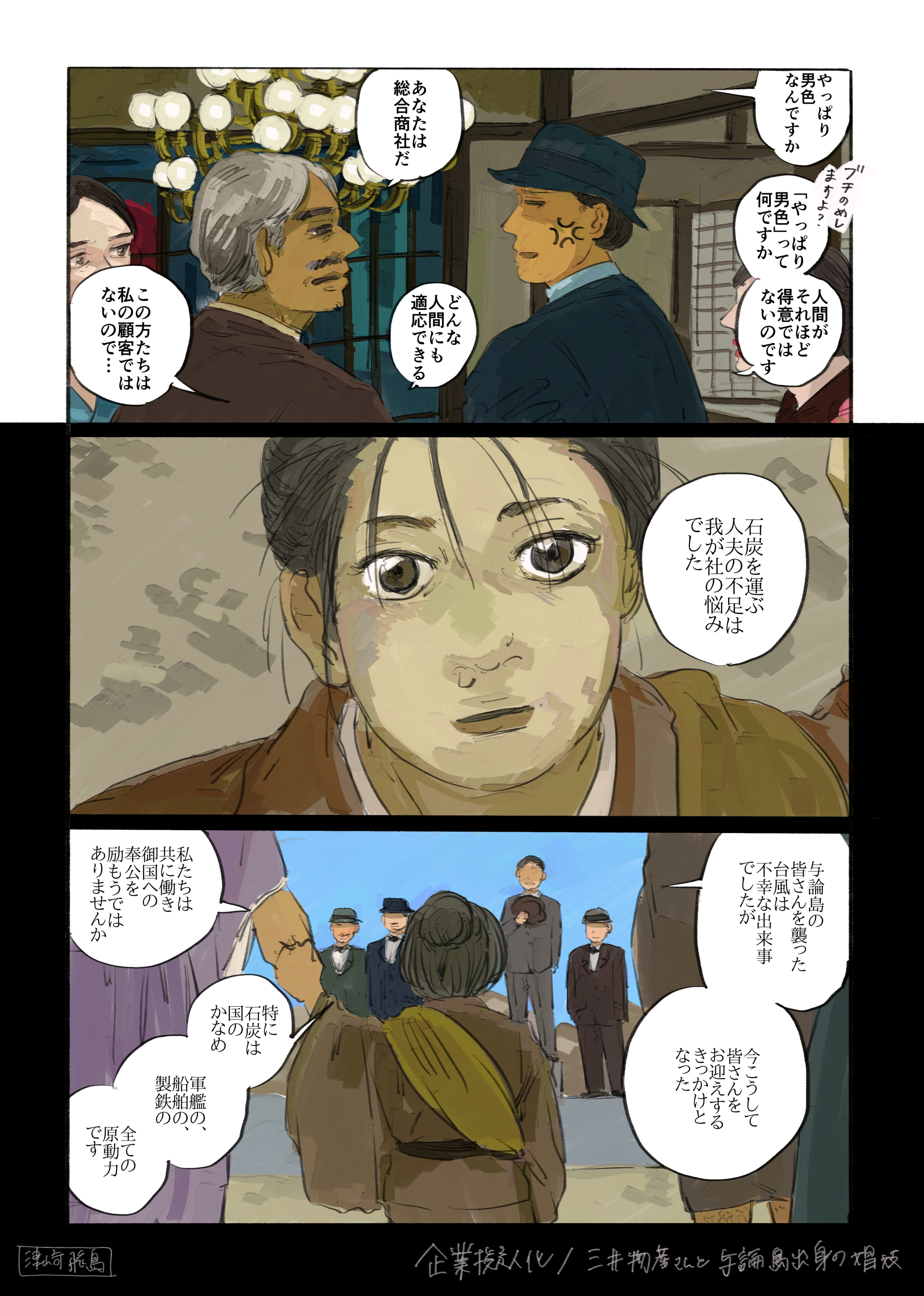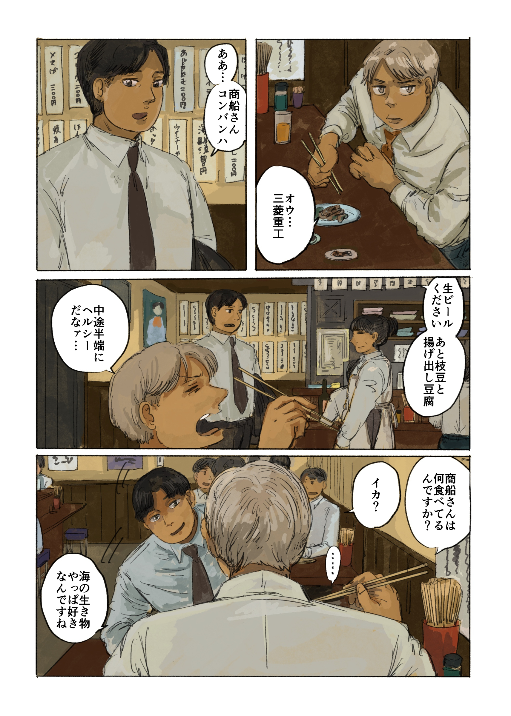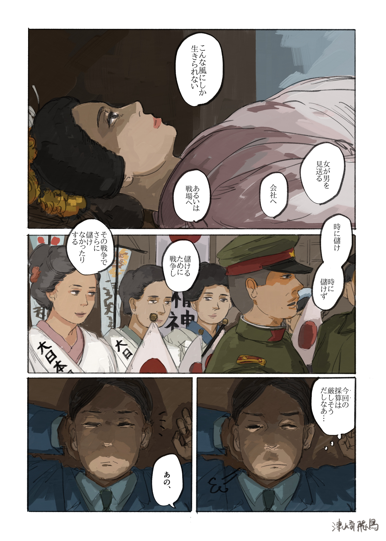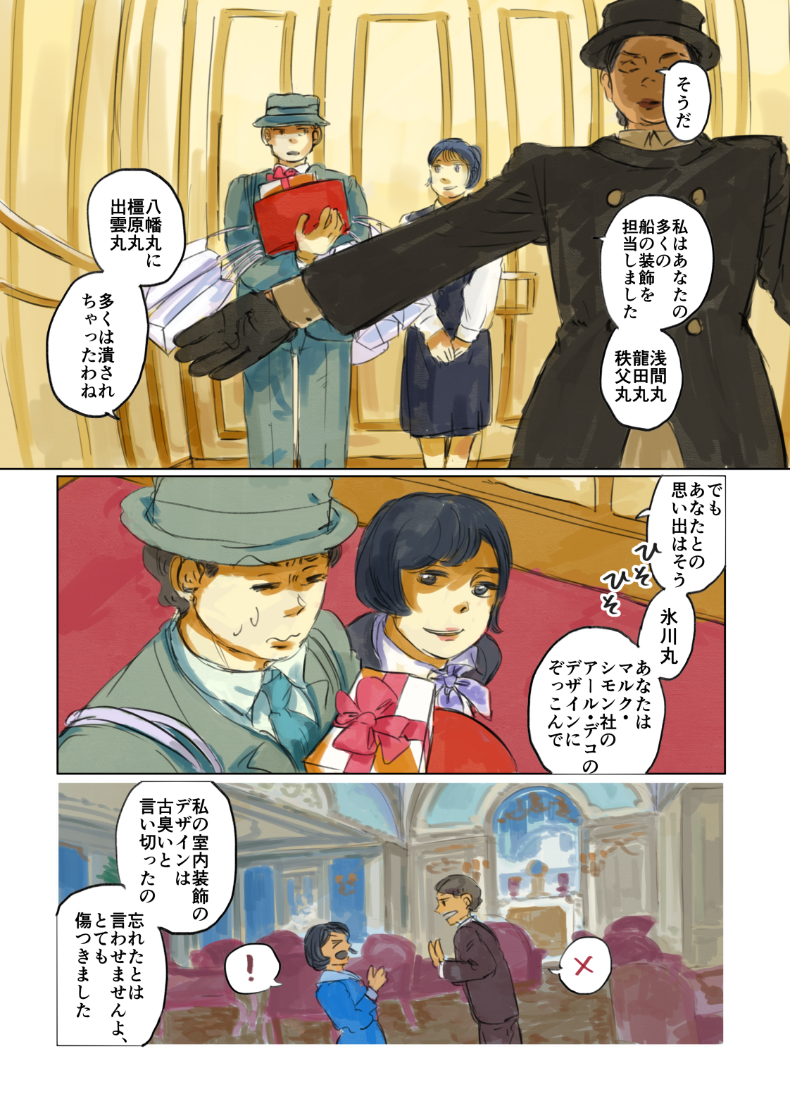 作品 2026/01/17 Sat 企業・組織擬人化創作「渺渺録」 (短編連作集。未完) 日本郵船が『日本郵船戦時船史』を編纂する1971年の逡巡と追想と、そこから広がる企業みんなの昔話。 Company & Organization Gijinka Count of Life“Remembrance and Separation”So Far from the Sea 「作品ログ」タグ:渺渺録 #「渺渺録」(企業・組織擬人化) #日本郵船 以下、すでに描いたものを時系列順に並べたもの(本編を仮組したもの)です。 ※とても長いので注意 本編の仮組 畳む