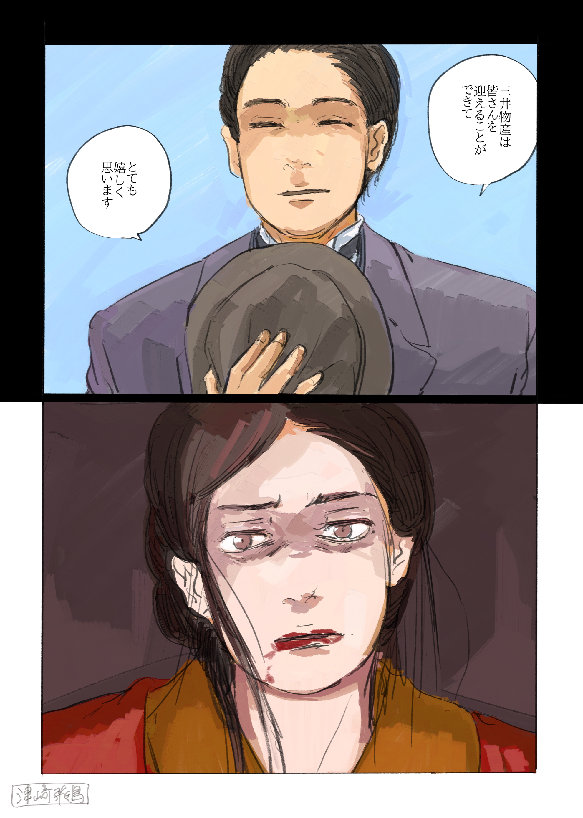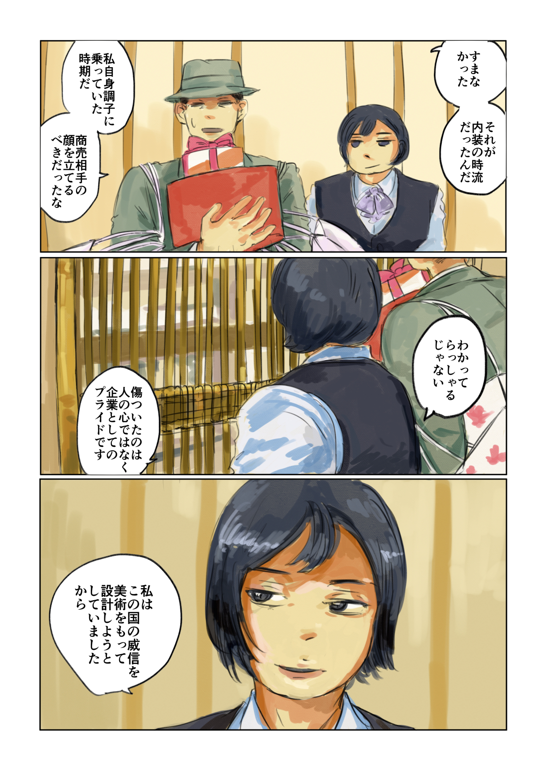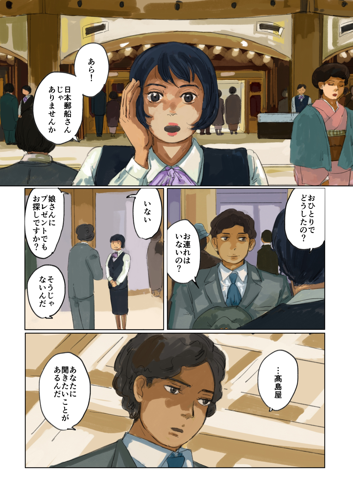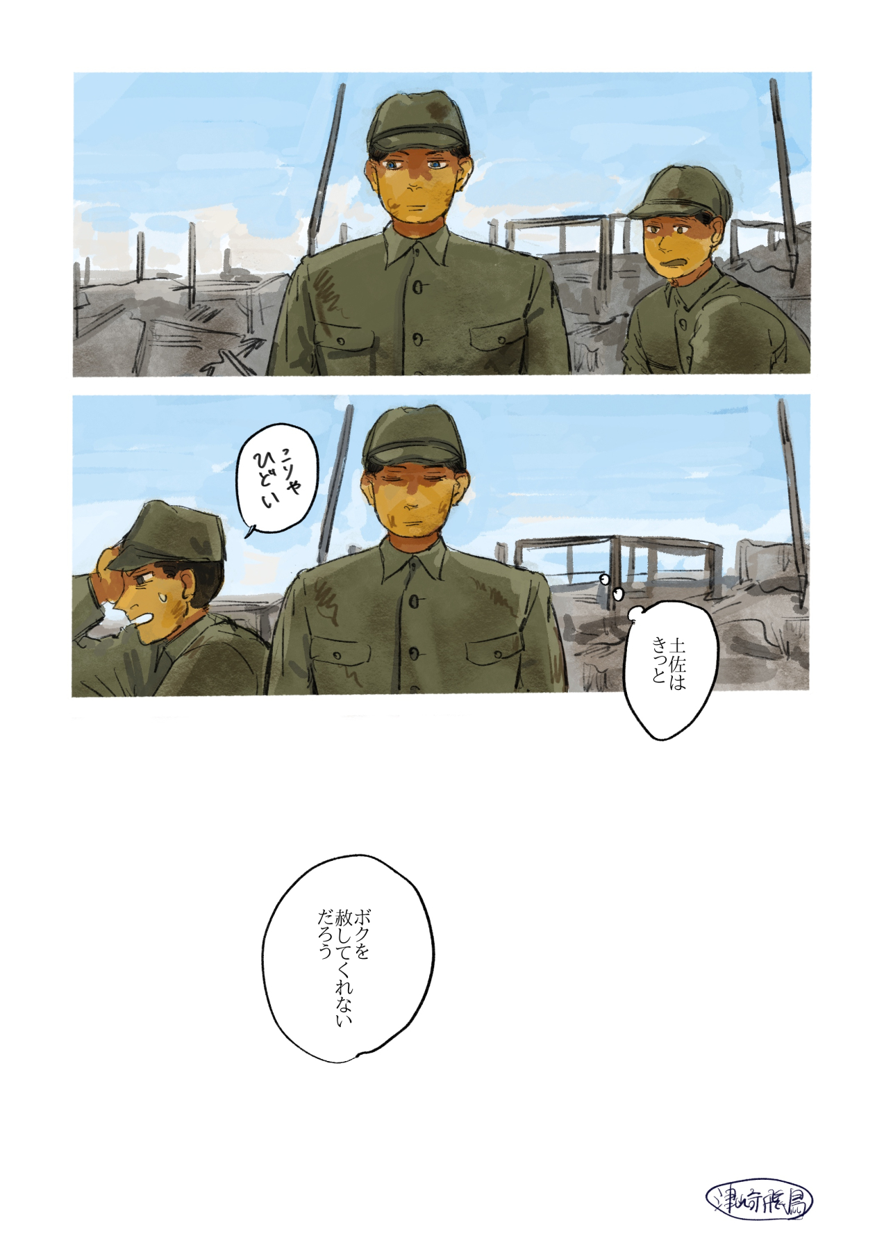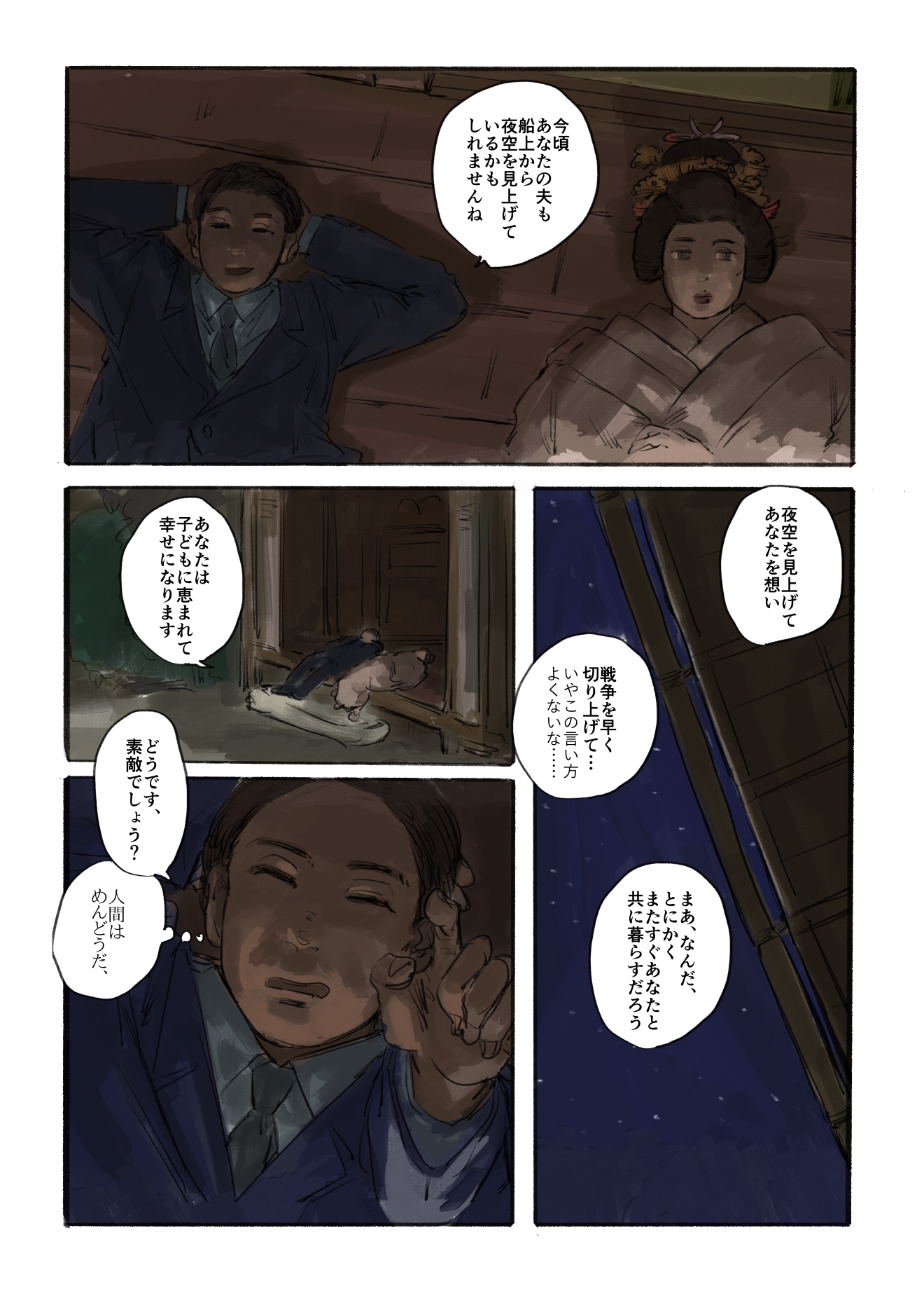 作品 2026/01/17 Sat 企業・組織擬人化創作「渺渺録」 (短編連作集。未完) 日本郵船が『日本郵船戦時船史』を編纂する1971年の逡巡と追想と、そこから広がる企業みんなの昔話。 Company & Organization Gijinka Count of Life“Remembrance and Separation”So Far from the Sea 「作品ログ」タグ:渺渺録 #「渺渺録」(企業・組織擬人化) #日本郵船 以下、すでに描いたものを時系列順に並べたもの(本編を仮組したもの)です。 ※とても長いので注意 本編の仮組 畳む