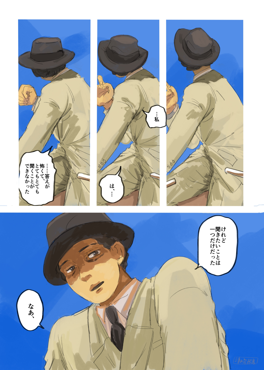 昔のスーツは2つボタンを両方とも留めていたのですが、これを忠実に描くと「スーツ知らん人」みたいになるのが悩みどころ