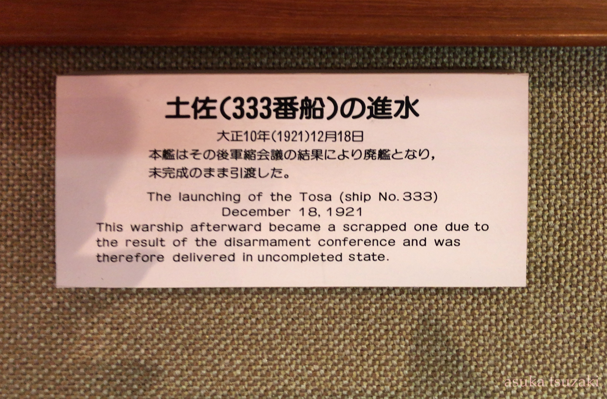 氷川丸:横浜に今もいる保存船(みんなも行ってみよう)。日本郵船の貨客船。えとぴりか:北方領土に行くための船(北方領土にある日本人の墓参りだったりをするための船)。所有者は「株式会社マリン・アドベンチャー」。土佐(写真):三菱重工の「長崎造船所史料館」の展示(現在休館中)。長崎造船所が建造した日本海軍の戦艦だが、ワシントン海軍軍縮条約のために廃棄が決定、自沈処分された。